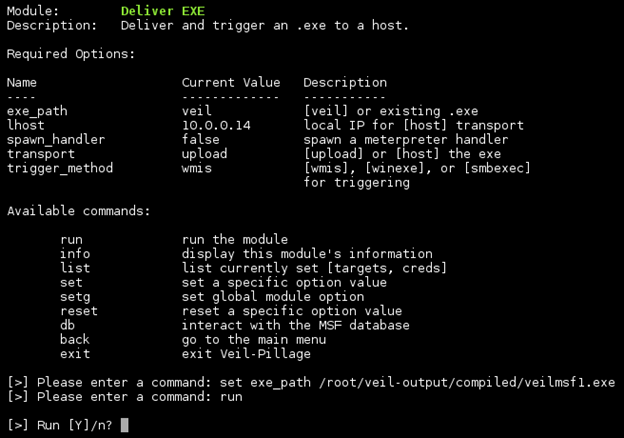 The Payload Delivery category contains those Veil-Pillage modules which can be used to upload and execute a specific payload like a Meterpreter executable or any Windows executable file.
