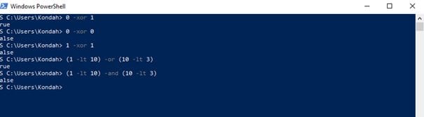 Let's begin with some logical operators like the XOR (-xor), the and (-and) and the or (-or) one: