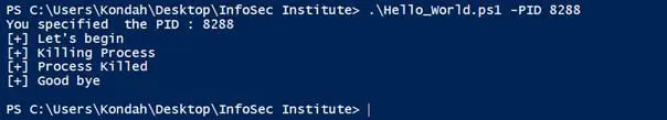 Here's a simple script that will make us able to kill a specific process, based on a parameter which is the PID of the process that we want to kill.