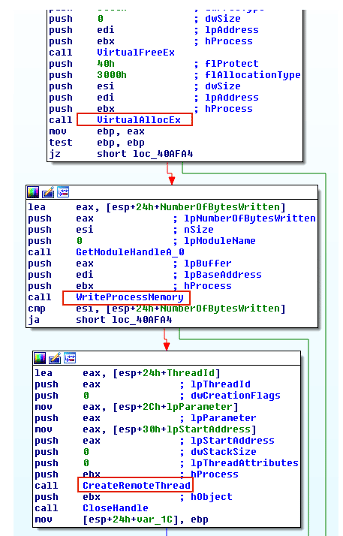 Figure 1: Rebhip malware executing a common DLL injection (source).