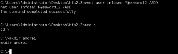 alert tcp $HOME_NET any -> any any (msg:"Command Shell Access"; content:"C:UsersAdministratorDesktophfs2.3b"; sid:1000004; rev:1;)
