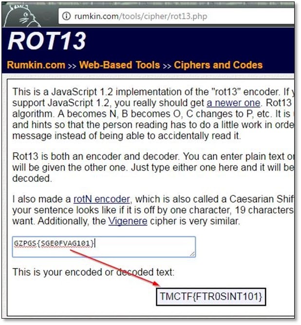 The flag doesn't seem to be in plain-text, and there was a hint for that Secret Challenge "13" the number 13 hints at the ROT 13 cipher and decrypted it by using online cipher decrypter.