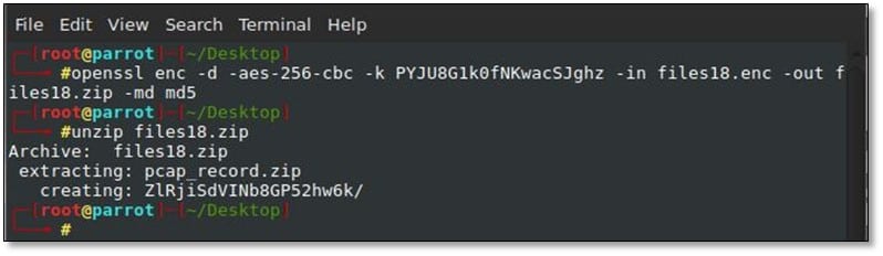 > openssl enc -d -aes-256-cbc -k PYJU8G1k0fNKwacSJghz -in files18.enc -out files18.zip -md md5
