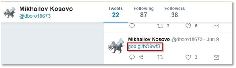 After looking on to the Twitter user's tweets, we found a short URL, and we opened the link.