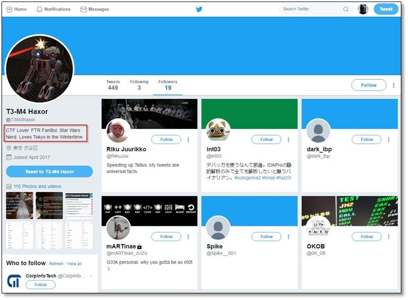 We opened the Twitter profile and did some profiling on it, we checked his all tweets, following, and followers for gathering intel about him.