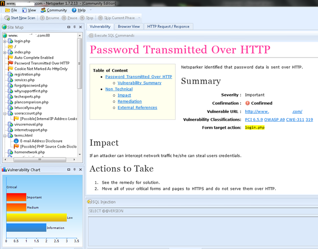 You can view the vulnerability chart also to understand the various loopholes along with the seriousness level.