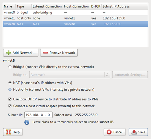 First of all, using "Virtual Network Editor", change the NAT IP address assignment to 192.168.0.0 as shown in the image below: