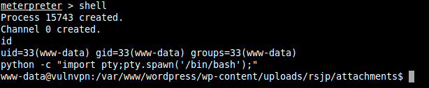 Our web shell is located in the rsjp/attachments/ directory, but the filename is changed to a long random string. The web shell can be accessed here: