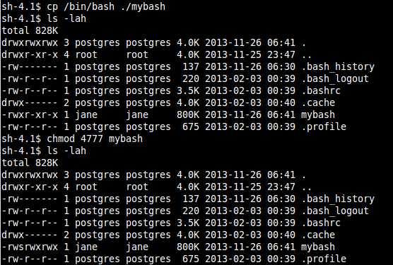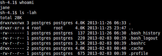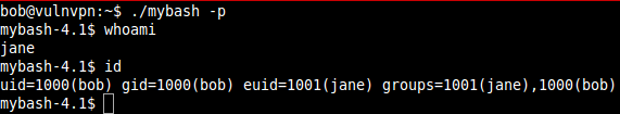 We are now logged in as user "jane" but the UID and GID is still that of user "bob".