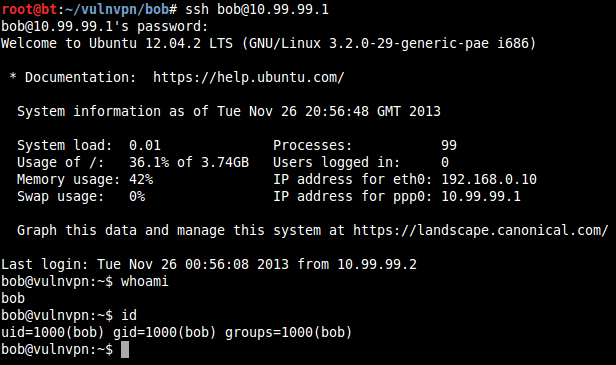 VulnVPN has been created by the author of http://www.rebootuser.com/ and I must say that it is a very good effort. The goal is to gain root access to a VPN server, and this article will take you through each step of the process.