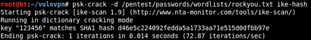 The pre-shared key dumped inside the file "ike-hash" can be cracked using "psk-crack".
