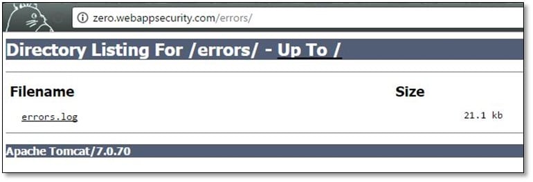 Next, we accessed the /errors directory which contains error log.