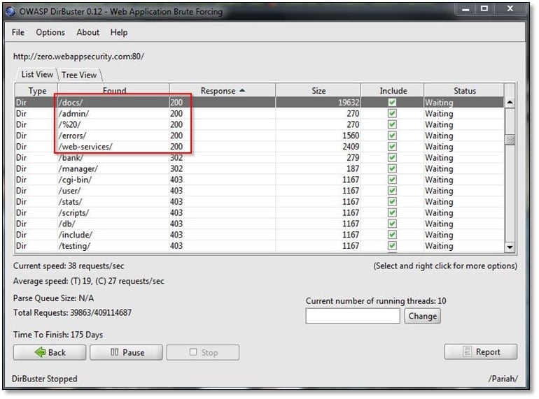 Next will use brute force technique for finding internal files of the application for this we will DirBuster tool.