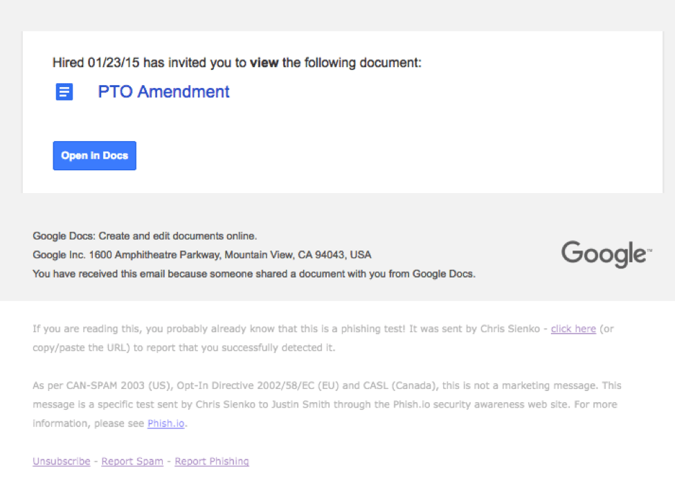 This realistic Google Docs invite might fool your CFO, but AwareEd modules can teach him to be more careful in future