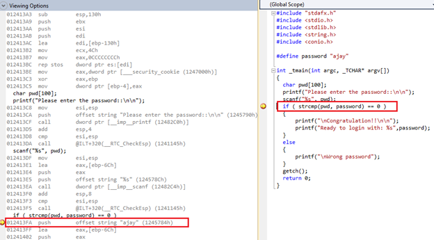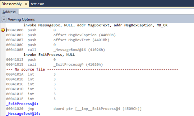 Although this section is not relevant to this article, but just for knowledge point view, we can disassemble any C++ file to its corresponding ASM code. The Visual Studio IDE is inbuilt with a Disassembly option, which is very helpful to detect a run time bug such as buffer overflow in the code via converting the source code file to an assembly code file as follows: