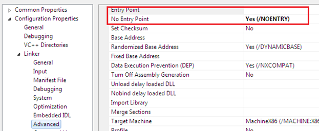 And as we all know, DLL files are libraries which contain method definitions. Entry point is typically absent in the DLL file. Hence we have to change this setting as follows: