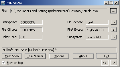 Supplying it to PEID says it has been packed with NULLSoft packer.