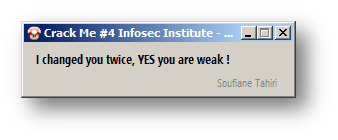 Basically, we need to change the string loaded even if this is a strong name protected assembly. Start by disassembling our target using ILDASM to produce an IL file, which is the attached CrackMe#4 –BreakingStrongName, then search for this string: