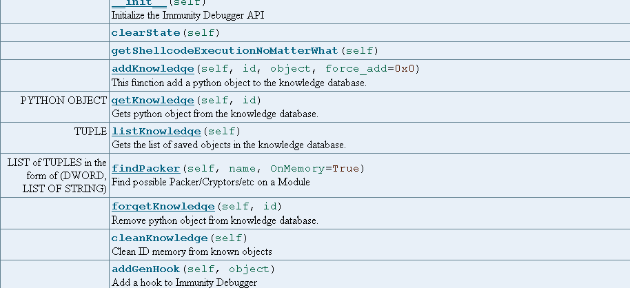 dbg = immlib.Debugger() – define a instance to a debugger class