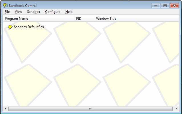 Sandboxie is a program that enables us to run a program in a sandbox to prevent malware from making permanent changes to our machine [6]. Sandboxie can easily be downloaded from the official Sandboxie website and installed on our machine. After Sandboxie has been installed, it will start a window like the one below.