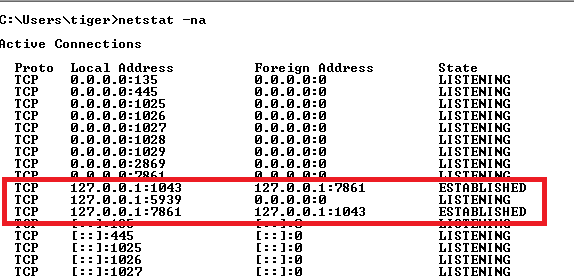 We can also confirm whether the socket is created on port 7861 or not by entering the netstat command.