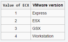 - VMware uses I/O port 5658h (VX) to communicate with VM. This value is moved to edx.