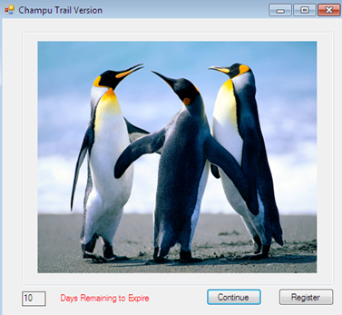 It's called "Champu," named after my son's pet. The program can be launched when a vendor initiates a test, and works for a fifteen day period. After the fifteen day period, it expires automatically. That's the first security feature it has. Other security features include a form to authenticate usernames and passwords, and a license key code, due to piracy. The initial trial version window looks like this: