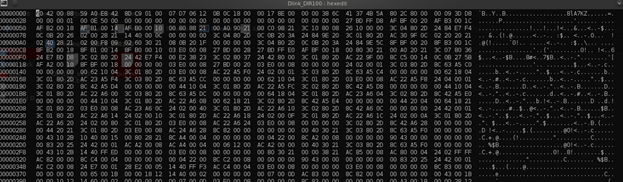 Using hexedit, we may try to identify headers: