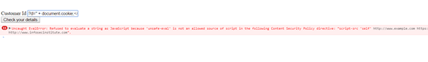 Figure 3: An attacker cannot add inline JavaScript unless the unsafe-eval keyword is present in the CSP header to allow string-to-JavaScript evaluations.