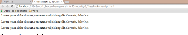 All an attacker has to do to exploit old websites which load files using XMLHttpRequest is create a page on a remote server that allows cross-domain requests from the particular origin of the victim website, or all origins using CORS. Let us say the attacker creates a webpage like this one: