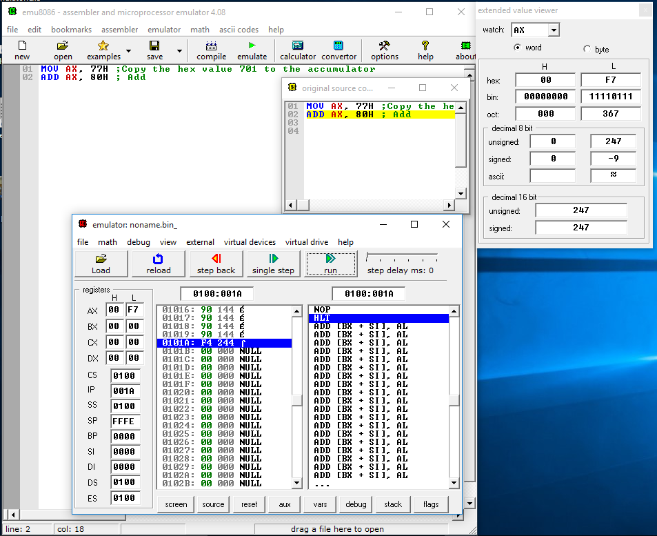 - MOV AX, 77H ;Copy the hex value 77 to the accumulator