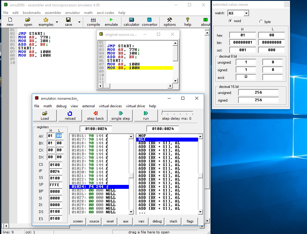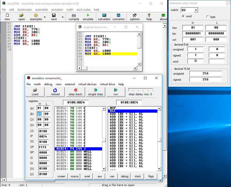 - MOV BX, 100H