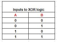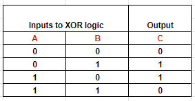 Table 2: Output of XOR logic with two inputs