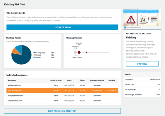 As part of your training launch, you’ll want to take advantage of freely available Phishing Risk Tests like this one from Infosec, to gauge employee vulnerability levels.