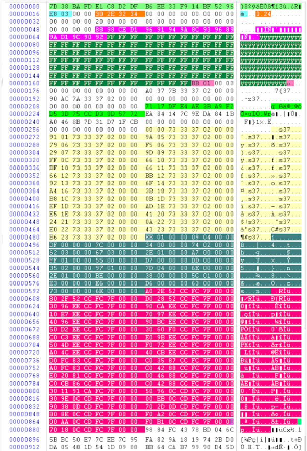 After storing and reading some details from the registry, it then decrypts its internal configuration structure, which is 1,152 bytes (see Figure 3).