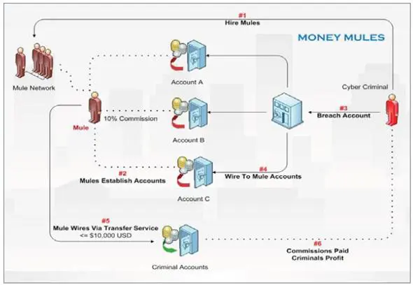 A profitable industry needs to reinvest illegal profits in legitimate business, a fundamental role in cyber-criminal organizations covered by the "money mules", individuals who are knowingly or unknowingly used to launder a crime syndicates' illegal gains. Money mules are used to anonymously transfer money from entities, typically through anonymous wire transfer services such as Western Union, Liberty Reserve, U Kash and WebMoney. Virtual currency services such as Bitcoin offer a valid instrument for money laundering preventing that law enforcement will be able to intercept the payment made to finance illegal activities.