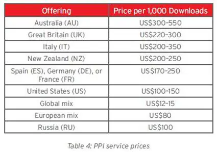 Figure 6 - Pay-per-install services price list (TrendMicro)