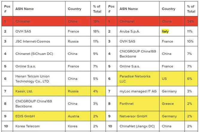 The experts highlighted that only 8% were exploit attacks, while 92% were reconnaissance scans for potential targets. 34% of the attacks originated from Russia. The list of top attackers also includes China, the U.S., France and Italy.