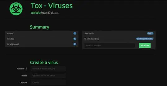 Cybercriminals behind Tox created a virus which, once opened in a Windows OS, encrypts all the files. When this process is completed, it displays a message asking to pay a ransom to a bitcoin address to unlock the files. The malware was available at toxicola7qwv37qj.onion on dark web.