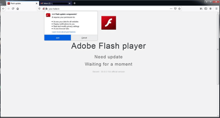 After accessing the fake Adobe Flash page, the user can add the extension as presented below. It’s also important to highlight that Adobe Flash is an EOF software, so internet end-users should be warned of this and about the critical consequences of installing extensions of this nature.