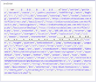 The fake extension communicates with the Scanbox JavaScript malware in later stages and implements its features. As observed below, the malware source code is obfuscated to make hard its detection and analysis.